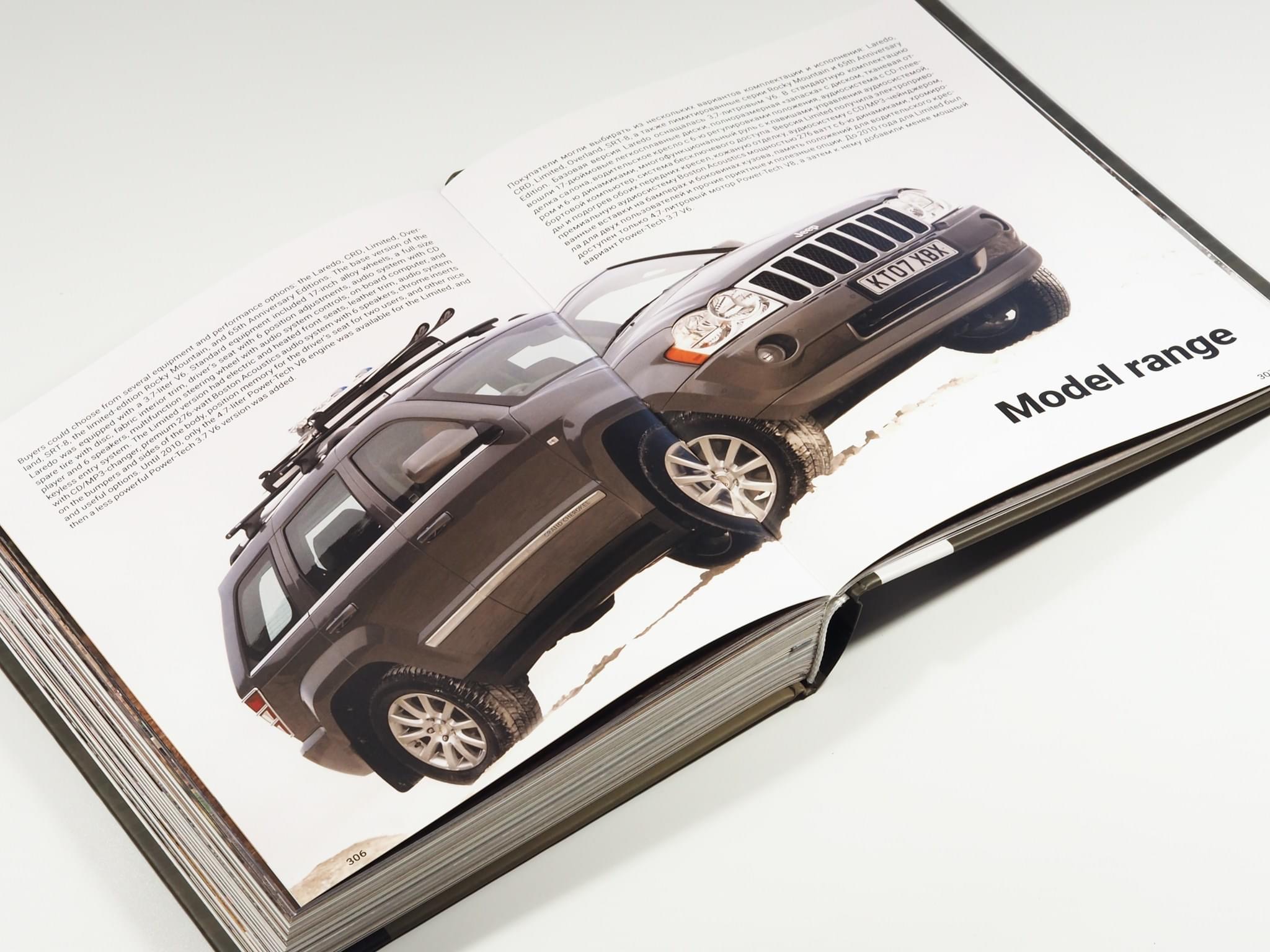 Книга у твердій палітурці “Jeep Cherokee” присвячена історії легендарних великих позашляховиків Jeep, від моделі Jeep Wagoneer до Jeep Grand Cherokee WK. Всередині ви знайдете сотні оригінальних фотографій з рекламних матеріалів компанії, опублікованих з 1960-х по 2000-і роки. Фотографії супроводжуються десятками технічних та історичних фактів. Ця книга безсумнівно буде чудовим подарунком для всіх поточних, колишніх і майбутніх власників Jeep, а також для всіх, хто цікавиться класичними моделями компанії.